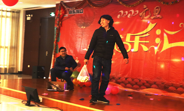 歡樂(lè)匯以“開球見喜”為主線,員工上場(chǎng)開球以隨機(jī)的形式抽取,開小球表演簡(jiǎn)單的小節(jié)目,無(wú)需準(zhǔn)備,簡(jiǎn)單新穎,比如,員工劉壽山開球開出——走模特步,讓他頗為難為情,跟著女主持一起模仿模特步,引得員工笑顏頓開;開大球,員工表演各種節(jié)目。匯場(chǎng)上,新年的歡樂(lè)氛圍火爆,員工舒心快樂(lè)的表演節(jié)目,王旭東、徐可的《沙漠駱駝》,以明快的節(jié)奏激活了歡悅的氛圍;杜杰的幽默表演——《中國(guó)功夫》,以粗狂的武術(shù),給大家?guī)?lái)了震撼;鞠林的一曲二胡獨(dú)奏《毛主席話兒記心上》,給大家?guī)Щ氐矫珷敔敃r(shí)代的回憶中去;李寧演唱的《在哪遙遠(yuǎn)的地方》,可謂聲情并茂,唱出了遙遠(yuǎn)地方姑娘的美麗與善良;陳爍帶來(lái)的魔術(shù)表演,新穎活躍,調(diào)節(jié)了匯場(chǎng)的氛圍,給大家新奇的感覺,也展現(xiàn)了陳爍機(jī)智和風(fēng)趣的個(gè)性;幽默滑稽的小品《如此問(wèn)價(jià)》,給大家?guī)?lái)了歡悅,也將元旦佳節(jié)的喜慶氛圍推上了新的高潮;員工顏彬的一曲《家住臨沂》,道出了沂蒙人民熱愛家鄉(xiāng)的昂揚(yáng)情結(jié);孟祥松、盧元福等員工的大合唱《我的未來(lái)不是夢(mèng)》,唱出了員工的心聲,展露出國(guó)眾員工熱愛生活,追求美好前程的精神面貌;趙桂基、高珩超表演的相聲《求職趣事》讓匯場(chǎng)的氛圍更加火爆。