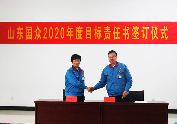 2020年1月11日下午,山東國眾在辦公樓一樓會議室舉行年度目標(biāo)責(zé)任書簽訂儀式。公司領(lǐng)導(dǎo)、全體中層管理干部參加了此次簽字儀式。公司常務(wù)副總經(jīng)理劉文吉主持儀式。