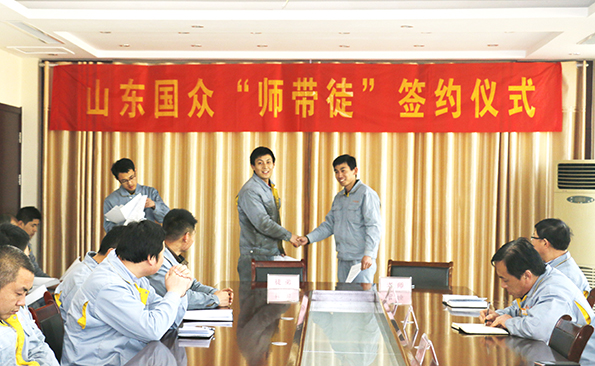 2017年3月14日,山東國(guó)眾機(jī)械科技有限公司隆重舉行“師帶徒”簽約儀式,公司總經(jīng)理謝文成、常務(wù)副總經(jīng)理劉文吉、崔新平等公司領(lǐng)導(dǎo)、公司各分部經(jīng)理及部分師傅與徒弟代表參加了儀式活動(dòng),劉文吉主持儀式。